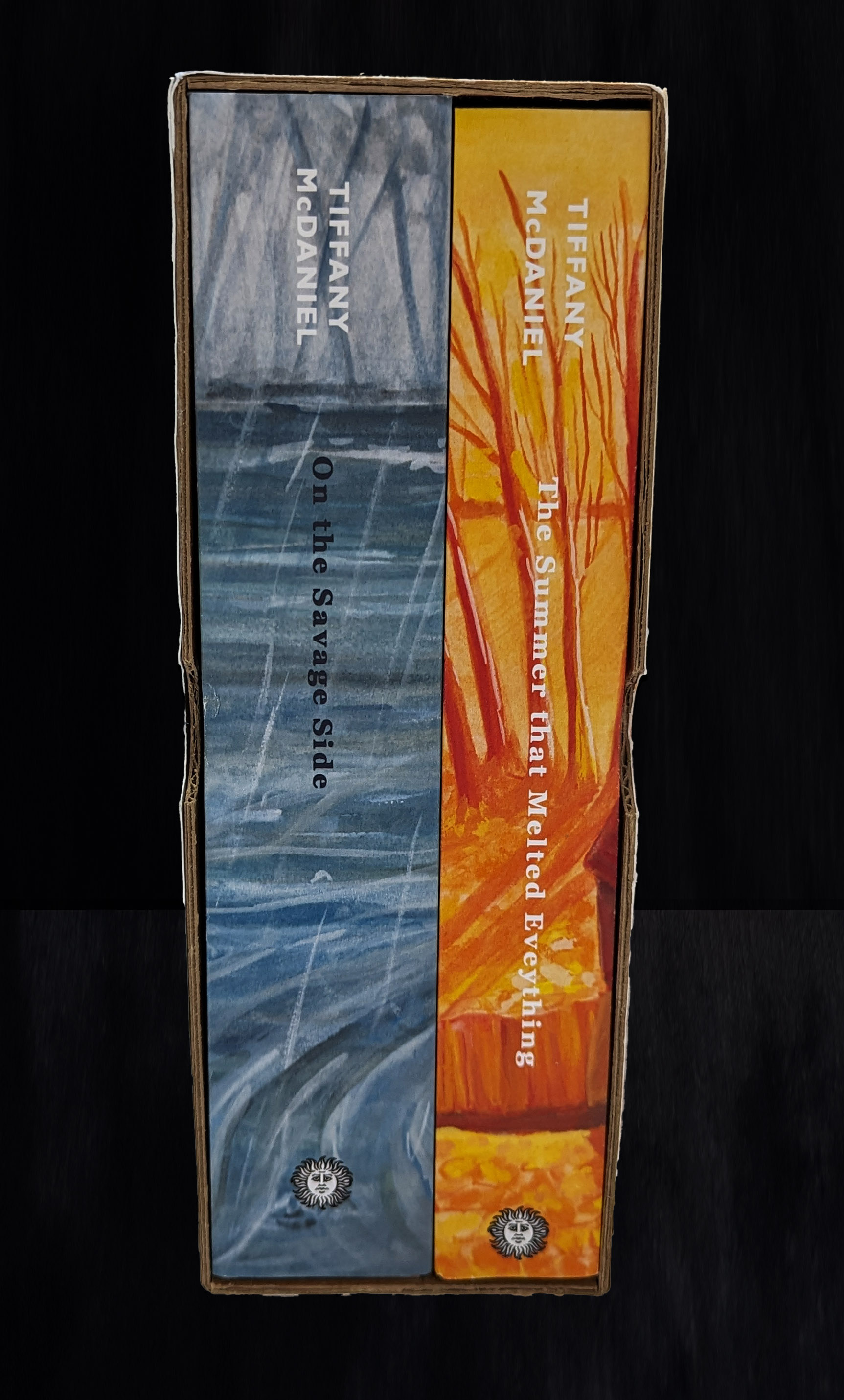 Here lies a mesmerising collection of two captivating book covers, elegantly housed within a beautifully designed slipcase. The driving force behind this beautiful set is the rich tapestry of contrasting elements and deeply felt emotions woven into the narrative threads of each book.